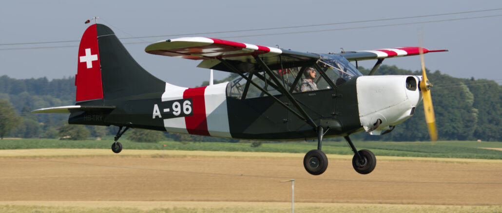 Stinson L-5 Sentinel (c/n 76-142?, HB-TRY, formerly 42-99186 of the USAAF and A-96 of the Swiss Air Force), flying display at Flugtage Fricktal-Schupfart 2018 air show, Schupfart, July 2018. In 1939, Stinson Aircraft Company introduced into market a high-wing light [...]
