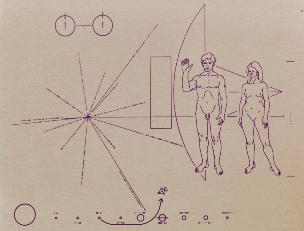 Less well known is the fact that the Voyagers were not the first to carry a message for alien civilisations. Small aluminium plaques, showing their place of origin, launch date and basic information about humans, as well as the location of the Solar System, were also placed aboard Pioneer 10 and Pioneer 11.