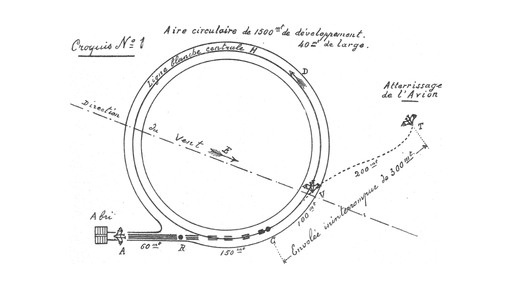 The third Ader´s aircraft was developed with financing from the French Ministry of War, and test flights were planned to take place at the Satory military base near Versailles. The aeroplane was expected to follow a circular route while taxiing and during flight. The first tests began on 12 October 1897, but no successful take-off was recorded.