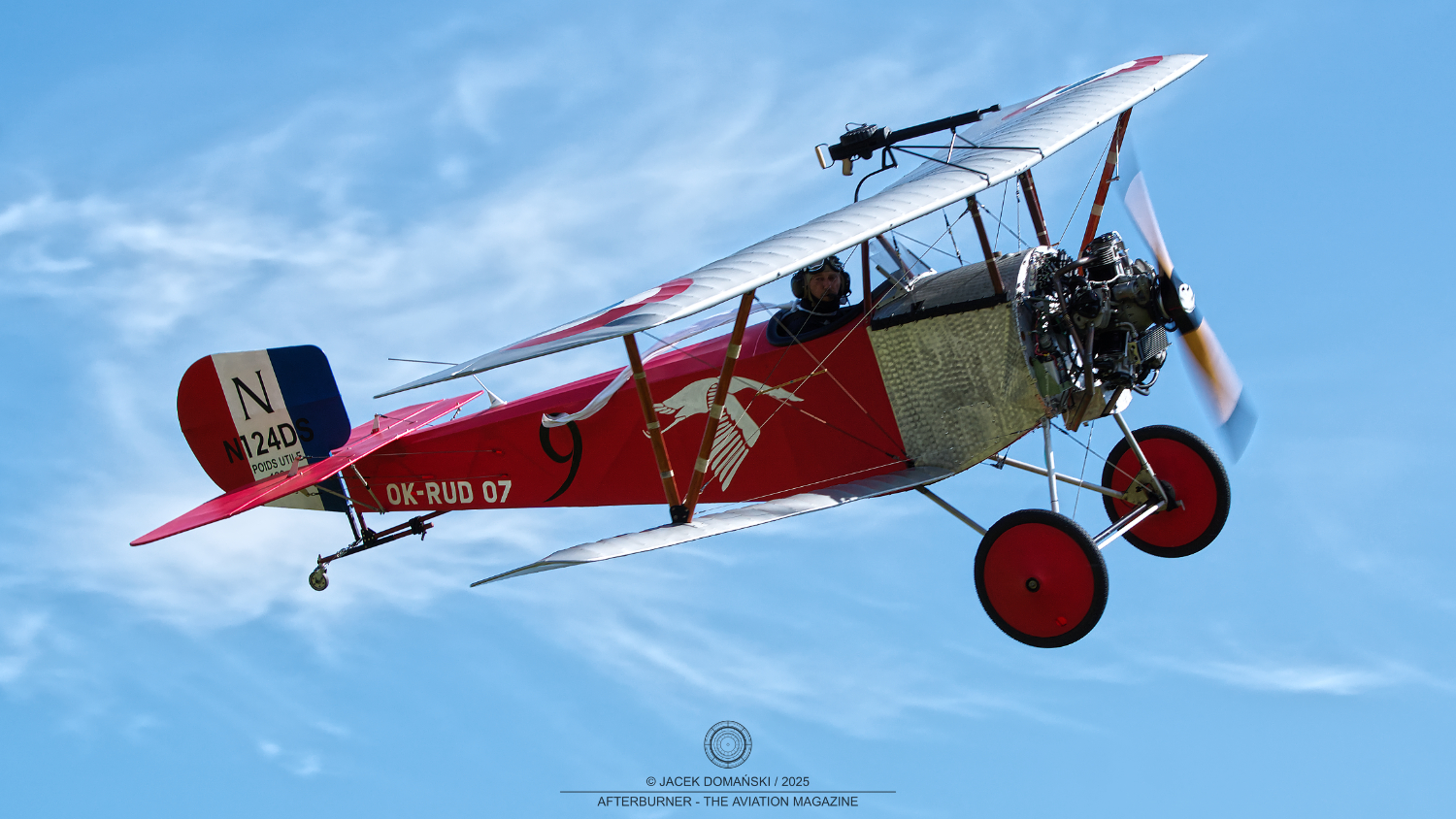Then, at the beginning of June 2025, during the 33rd Aviation Fair, Letka Aviatické pouti had its long-awaited public premiere (The spirit of flight returns to Pardubice – Aviatická pouť 2025). All three military replicas – the Nieuport 11, the Aviatik Berg D.I and the Morane-Saulnier MS.139 – took part in the flying programme. These were supported by the JK-type aeroplane, which was displayed statically and later performed a short flying display on the second day of the show.