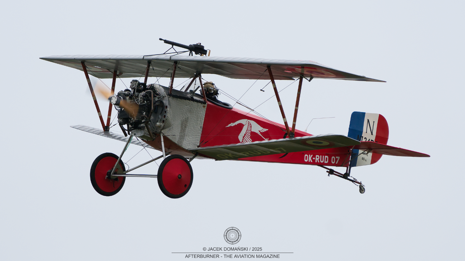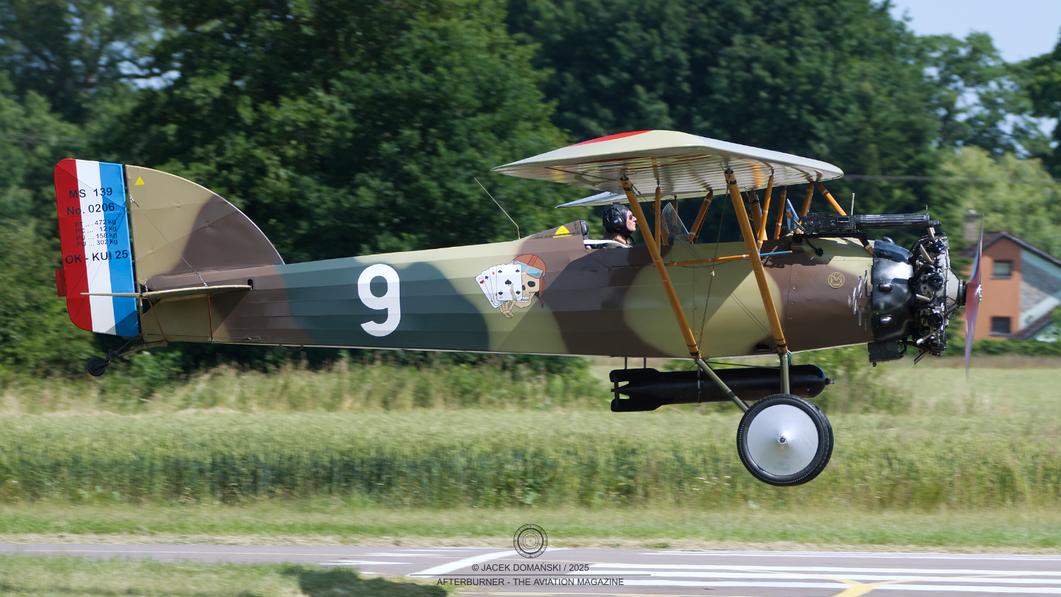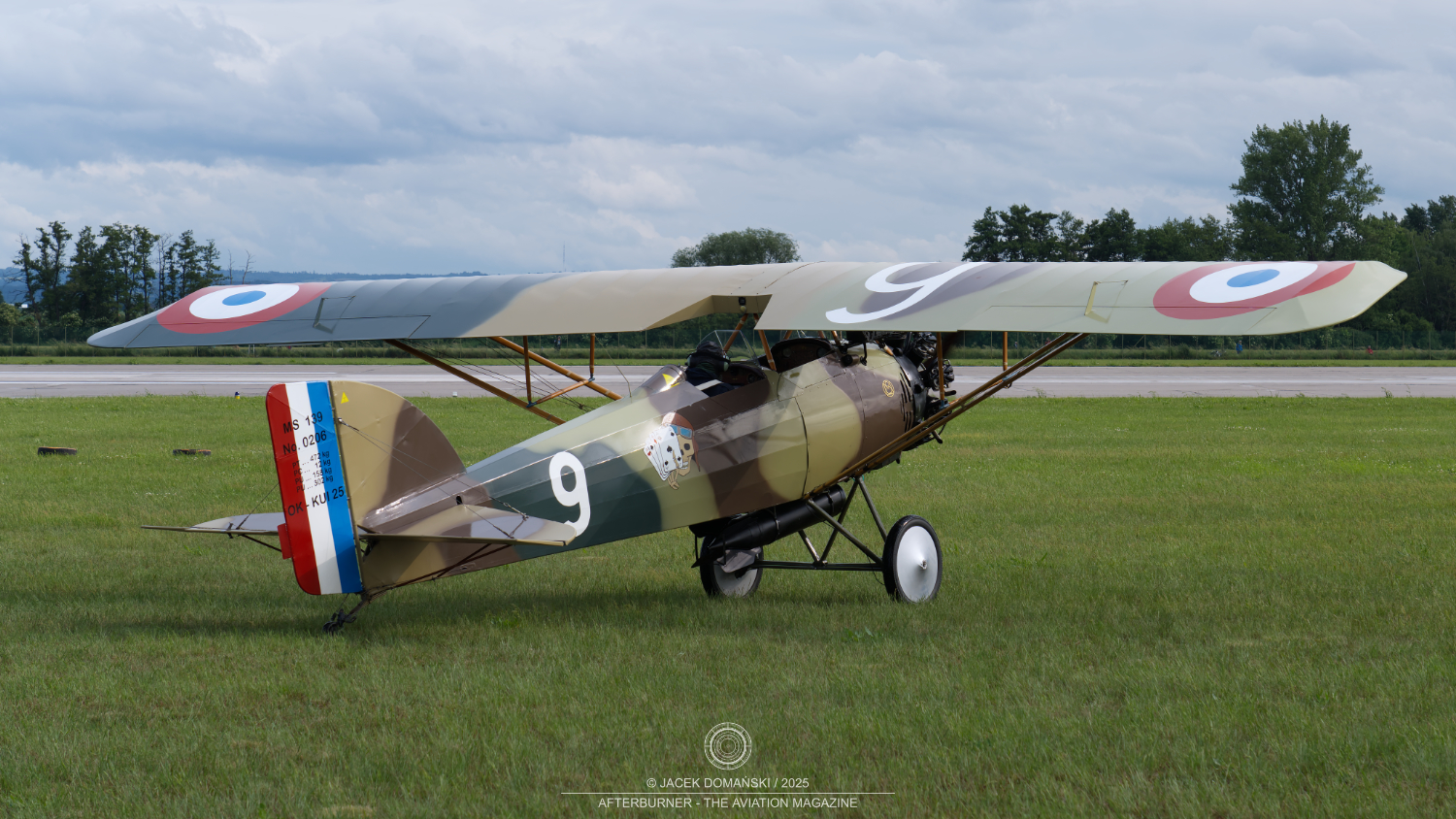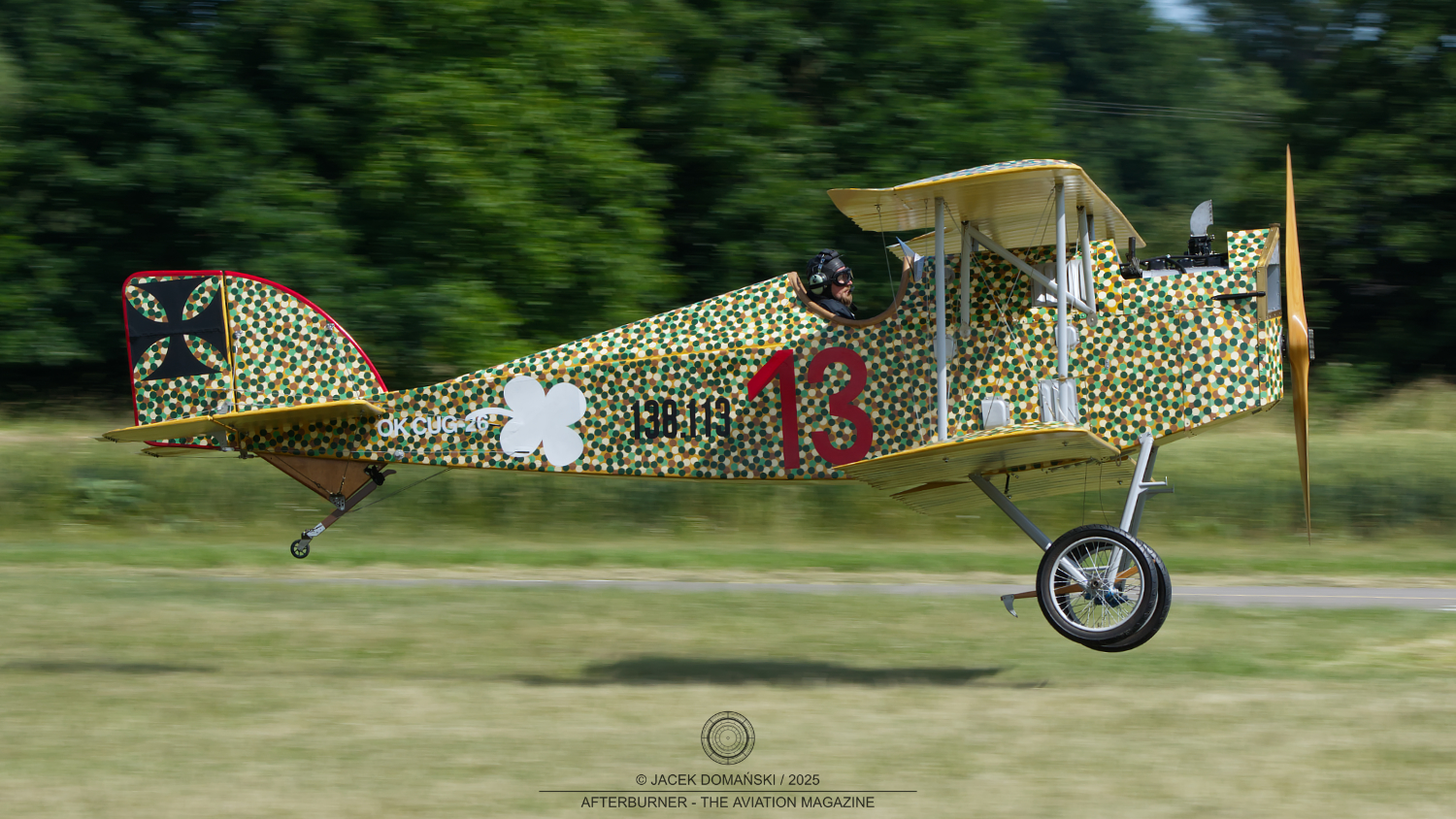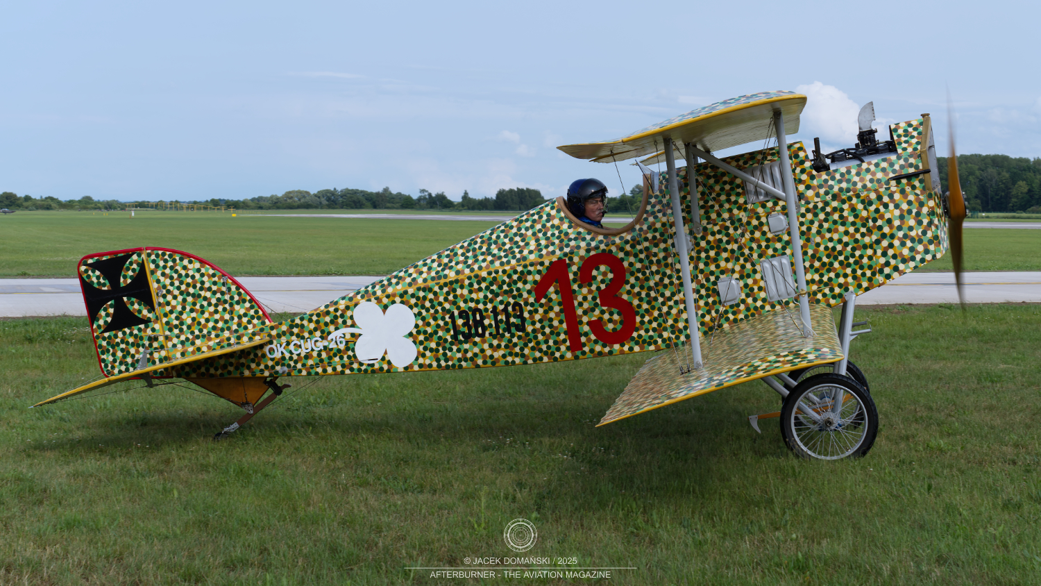 Then, at the beginning of June 2025, during the 33rd Aviation Fair, Letka Aviatické pouti had its long-awaited public premiere (The spirit of flight returns to Pardubice – Aviatická pouť 2025). All three military replicas – the Nieuport 11, the Aviatik Berg D.I and the Morane-Saulnier MS.139 – took part in the flying programme. These were supported by the JK-type aeroplane, which was displayed statically and later performed a short flying display on the second day of the show.