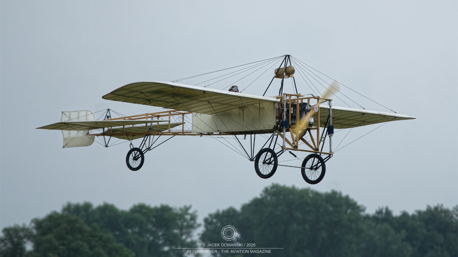 The year 2025 marked two significant milestones for the Aviation Fair Squadron. On 25 April 2025, the replica of Jan Kašpar’s Blériot-type aircraft was officially unveiled during a ceremony at Kunětice airfield, attended by representatives of the Pardubice Region, the Statutory City of Pardubice and the general public (Blériot replica is officially launched).