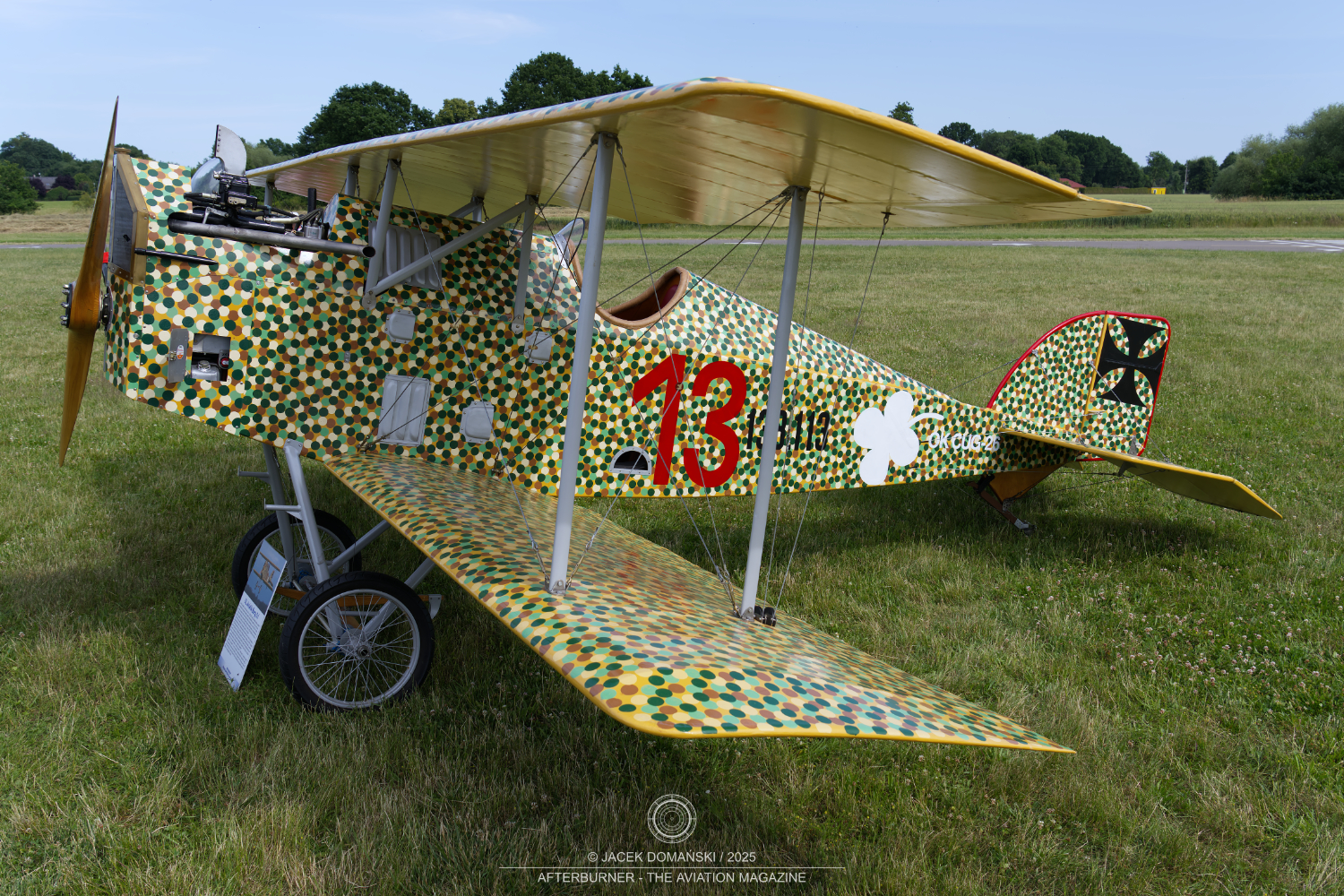 The full-scale replica of the Aviatik biplane was built by the well-known Czech aircraft constructor Václav Vondrášek. Its final adjustments for the Aviation Fair were carried out by Pavel Majzner from Jehnědí. The aircraft is powered by a 104 hp Walter Minor inline engine (Aviation Fair Squadron acquired its second aircraft).