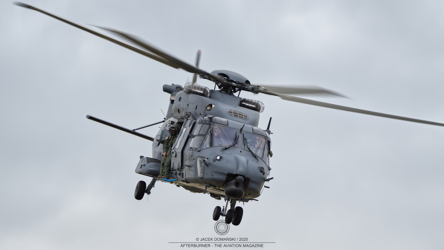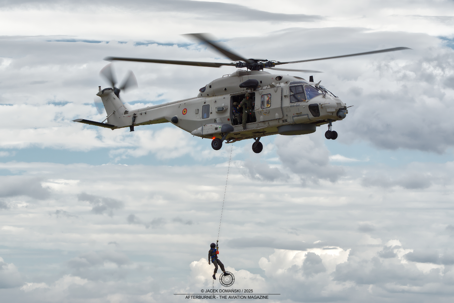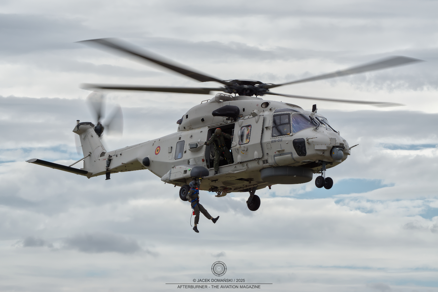 Nevertheless, two other NH90 helicopters arrived at Kbely. The first was the NH90 NFH Caiman from 40ste Smd MAR/SAR (the 40th Heli Squadron) of the Belgian Air Component. Based at Koksijde, the squadron focuses on transport, anti-submarine warfare and the SAR duties.