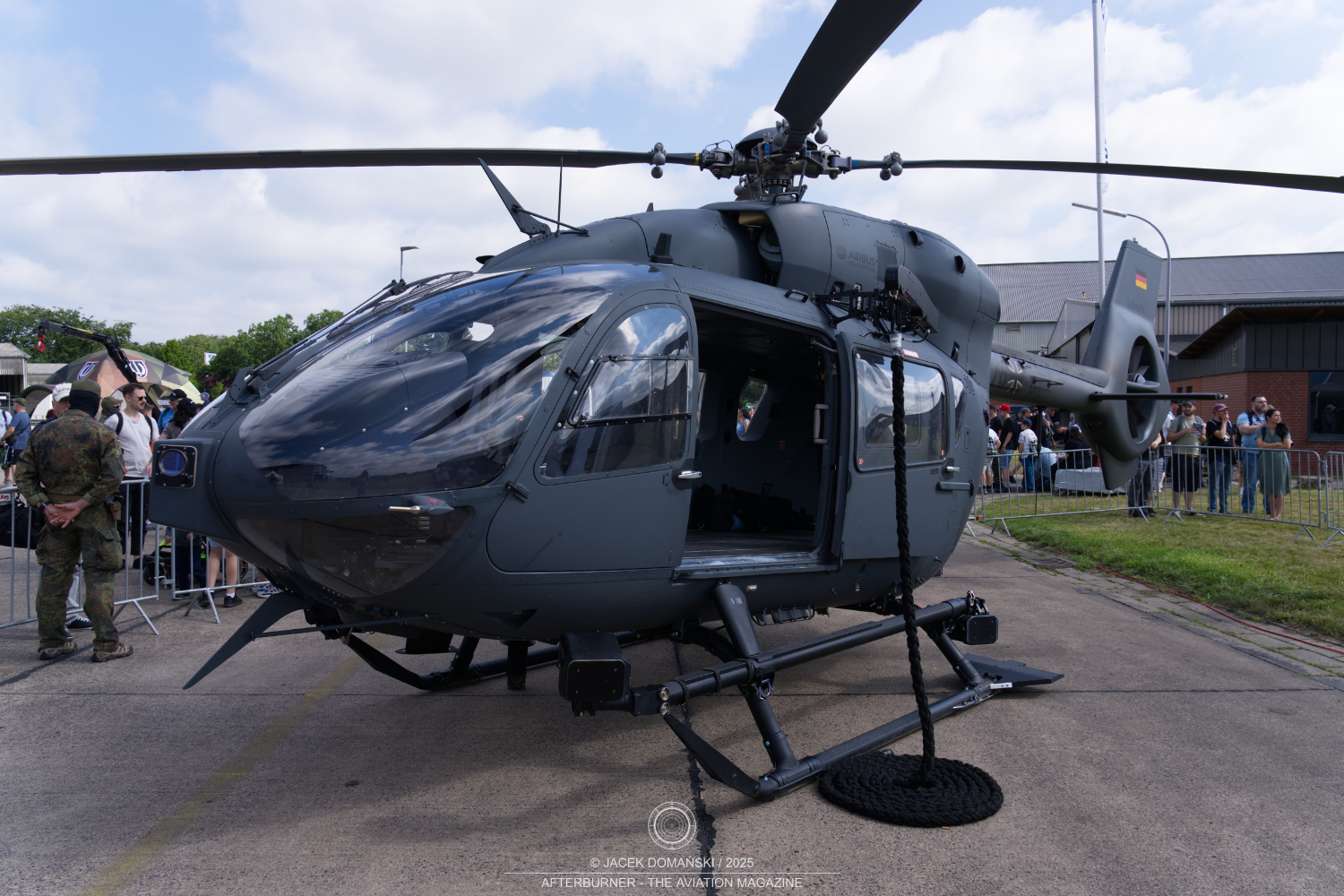 The two British Airbus H135 Juno HT1 (EC135T-3H) training helicopters, operated by No. 1 Flying Training School of the Royal Air Force, were the only examples of foreign military equipment exhibited in Bückeburg in 2025.