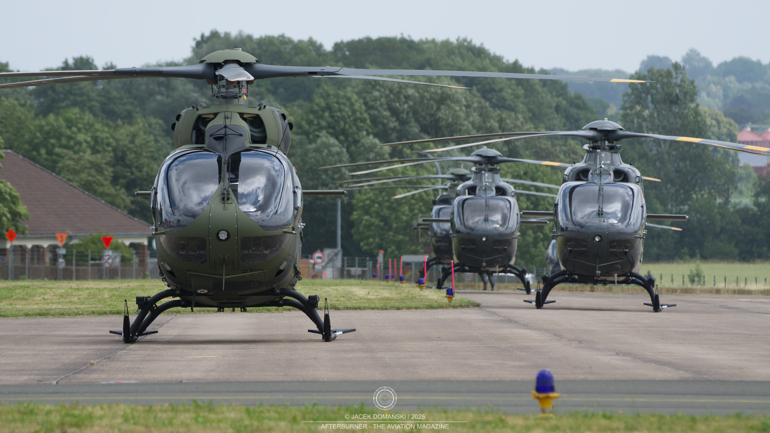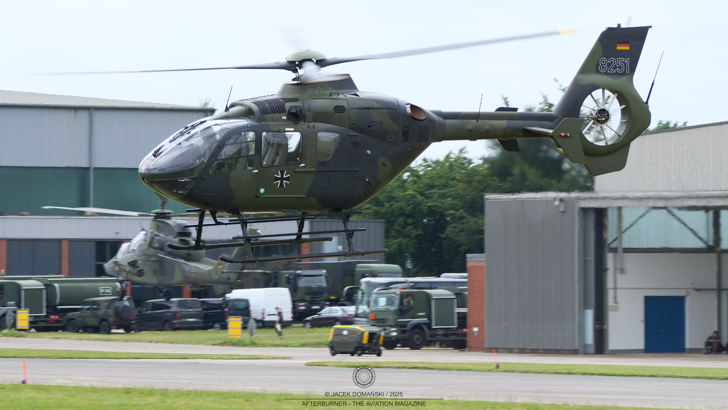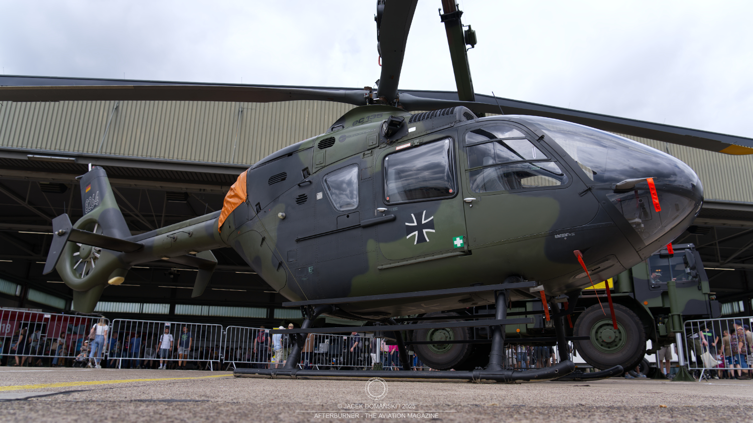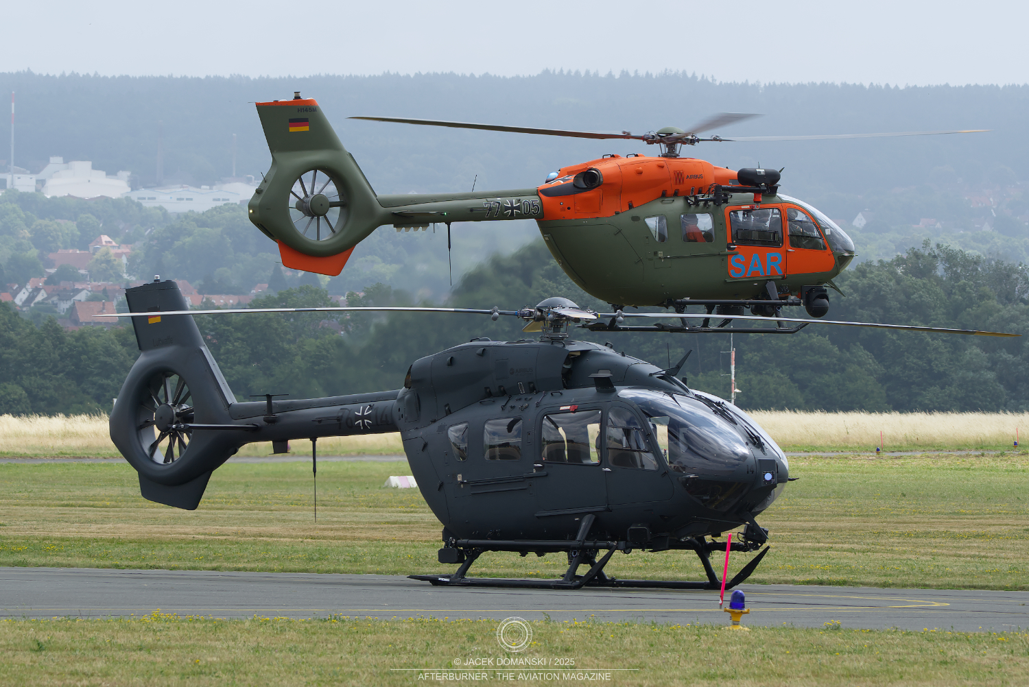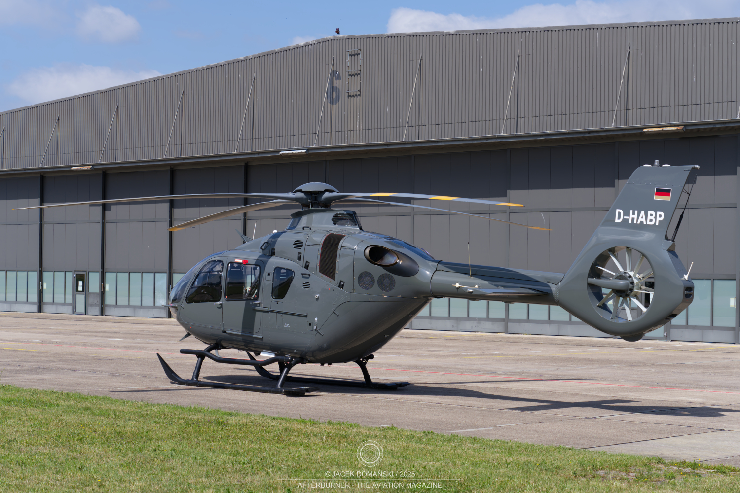 The two British Airbus H135 Juno HT1 (EC135T-3H) training helicopters, operated by No. 1 Flying Training School of the Royal Air Force, were the only examples of foreign military equipment exhibited in Bückeburg in 2025.