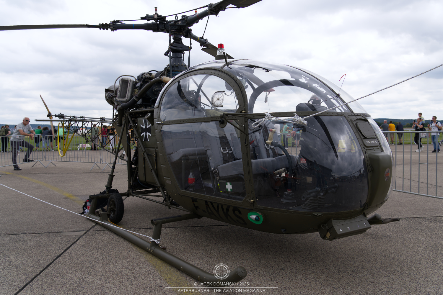 The exhibition included the North American Rockwell OV-10B(Z) Bronco, the Sikorsky H-34G, the Fiat G.91R/3, the Piaggio P.149 (Focke-Wulf FWP.149D), the Dassault/Dornier Alpha Jet A, the Sud-Est SE.3130 Alouette II and the Bölkow Bo 105. Visitors had the opportunity to sit in the cockpit of the Alpha Jet, learn about helicopter construction using the H-34G as an example, and observe a landing gear retraction demonstration on the Bronco.
