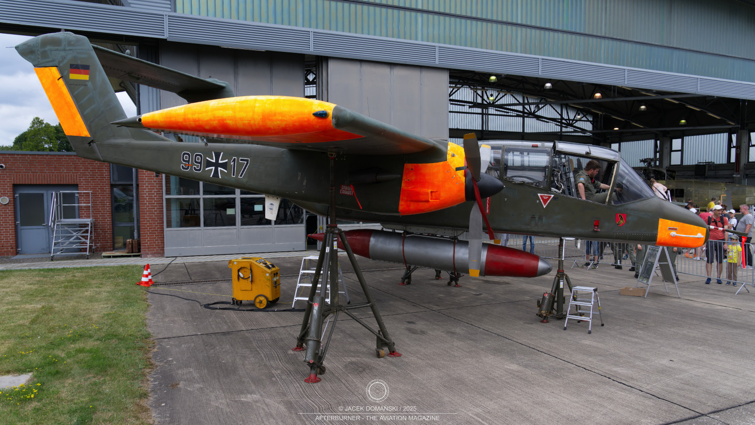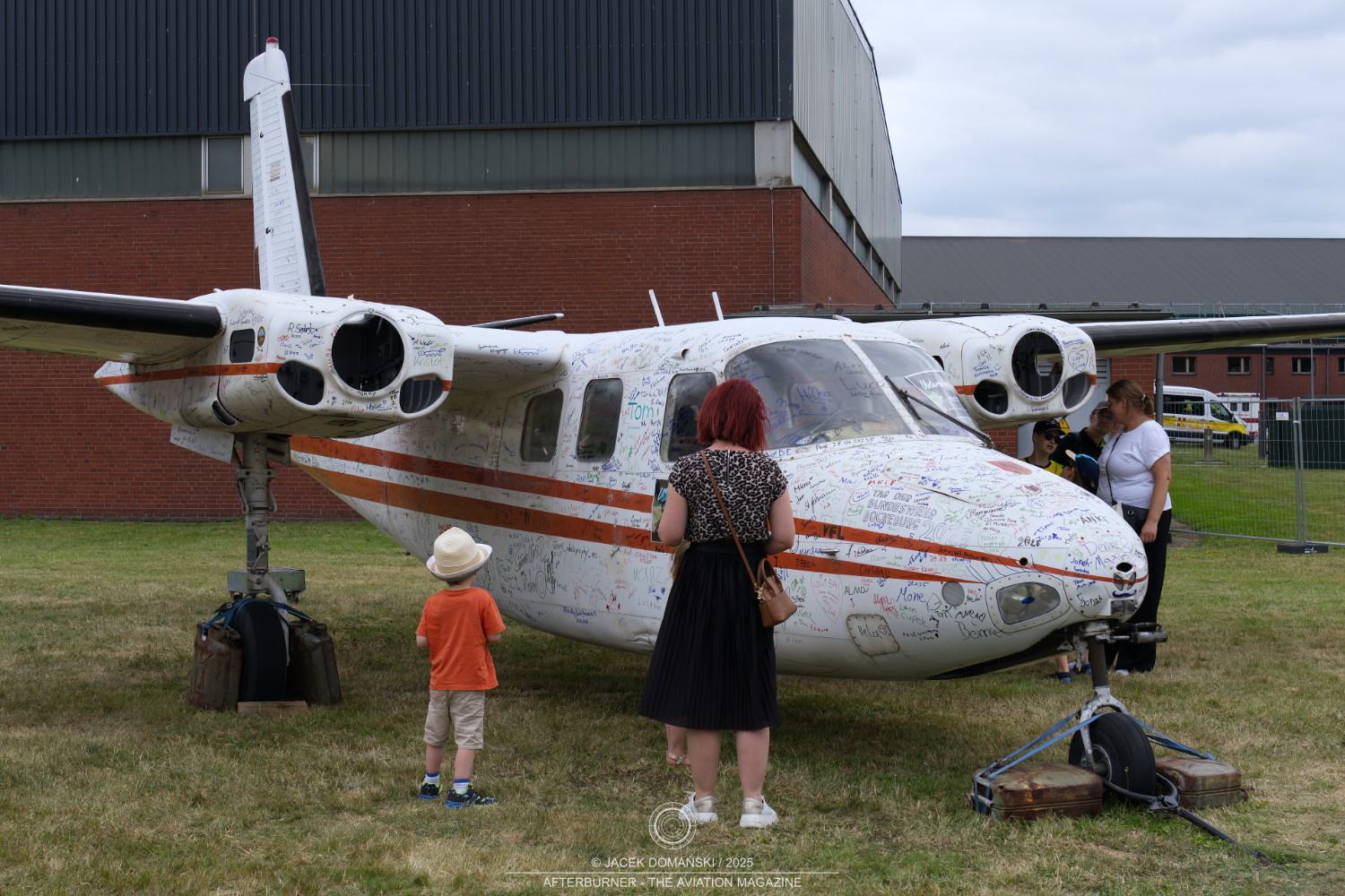 Adjacent to Ausbildungswerkstatt, visitors to Tag der Bundeswehr 2025 could find the Aero Commander 500B twin-engine aircraft. This former instructional airframe was used for an engaging project under which everyone could place their signature on the aeroplane. Within a short time, the Commander fuselage was covered in names, drawings and a variety of slogans.
