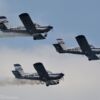 Two more teams were also seen in Iława – however not purely aerobatic ones – the Cellfast Flying Team from Krosno, flying three Morane Rallye aeroplanes (in three different variants, MS-880B, MS-883 and MS-893A), and The Flying Dragons, the group of seven powered paraglider pilots flying in formation. Those paraglides were, definitely, the lightest aircraft seen during the air show, and the formation display experience was increased by the smoke system they used.