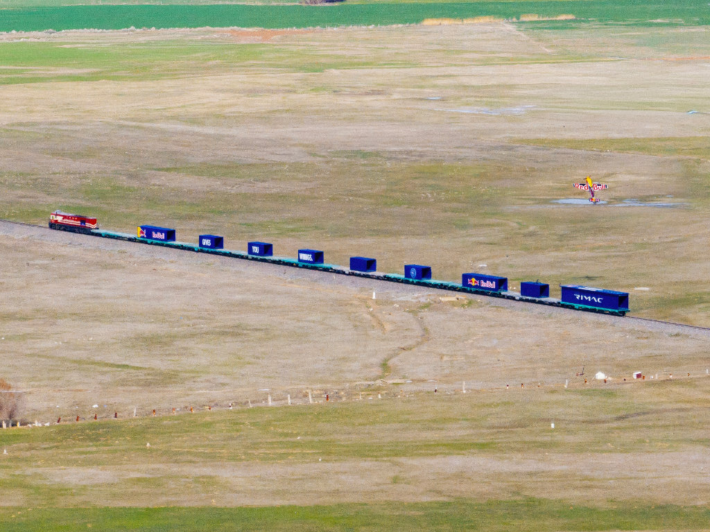 In a recent press release, the Red Bull company announced that, on 16 February 2026, Dario Costa performed a world-first manoeuvre in Afyonkarahisar by landing his Zivko Edge 540 aircraft on top of one of the containers carried by a moving cargo train, and then taking off from it.