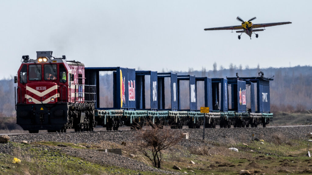 In a recent press release, the Red Bull company announced that, on 16 February 2026, Dario Costa performed a world-first manoeuvre in Afyonkarahisar by landing his Zivko Edge 540 aircraft on top of one of the containers carried by a moving cargo train, and then taking off from it.
