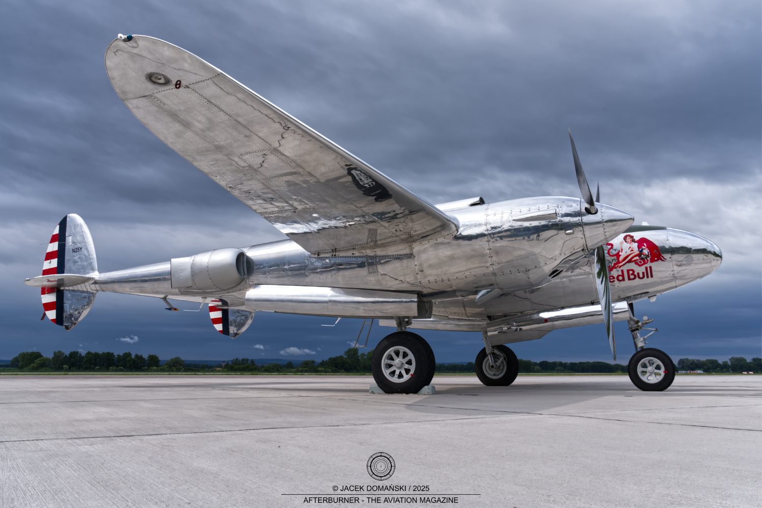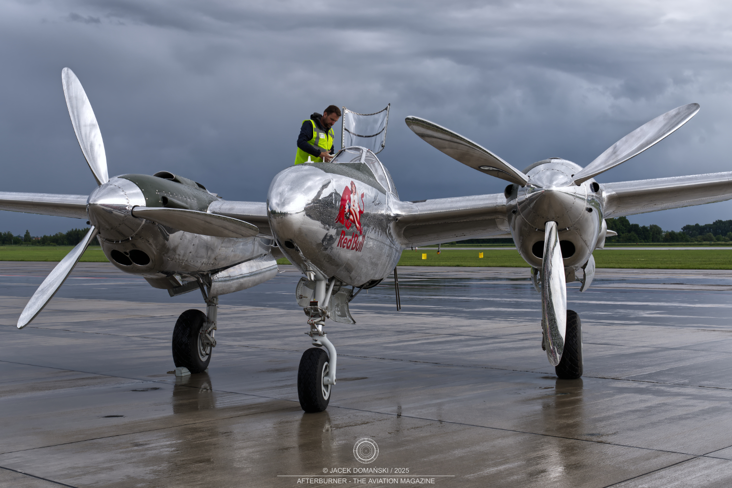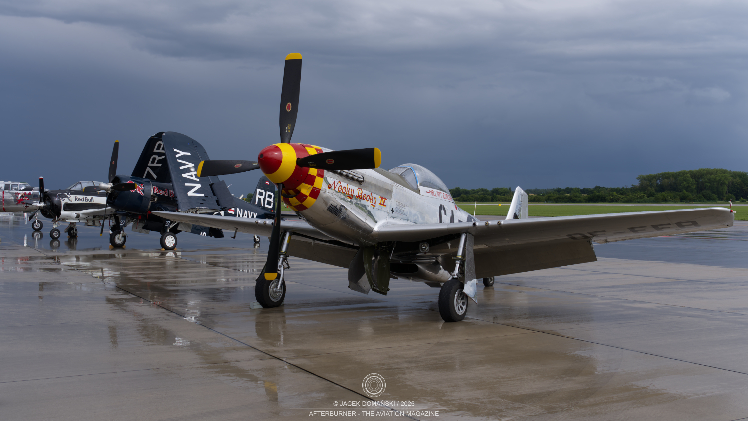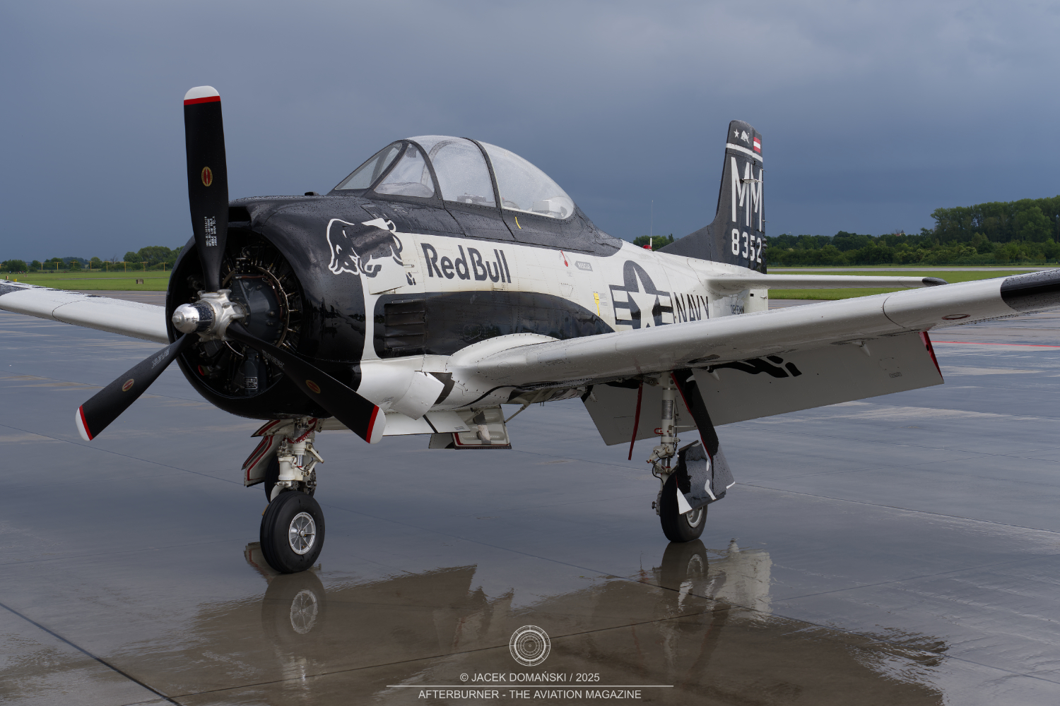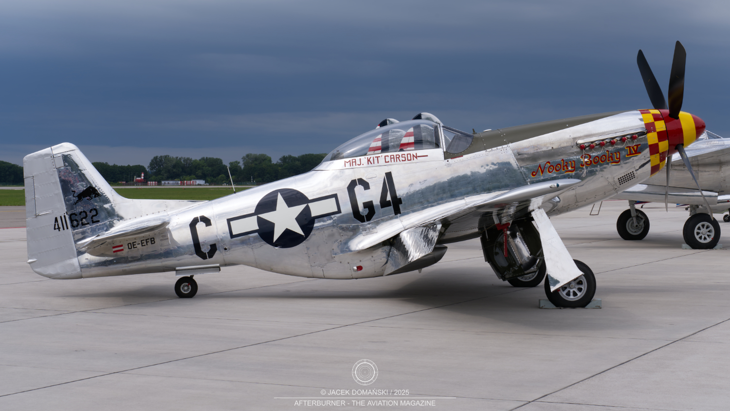 The world-renowned Flying Bulls collection from Hangar 7 in Salzburg has been a key participant in the event for many years. Despite the weather, the team arrived in Pardubice with a formation of five warbirds: a North American B-25J Mitchell, a Lockheed P-38L Lightning, a Chance Vought F4U-4 Corsair, a North American T-28B Trojan, and one of the team’s latest acquisitions – the North American P-51D Mustang “Nooky Booky IV”.
