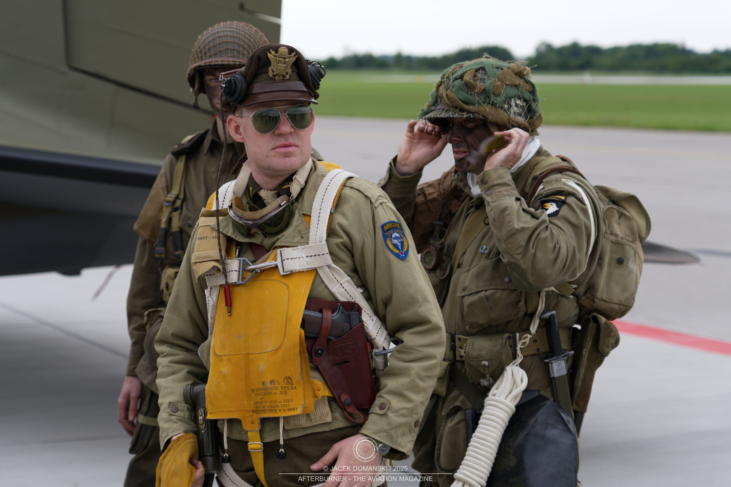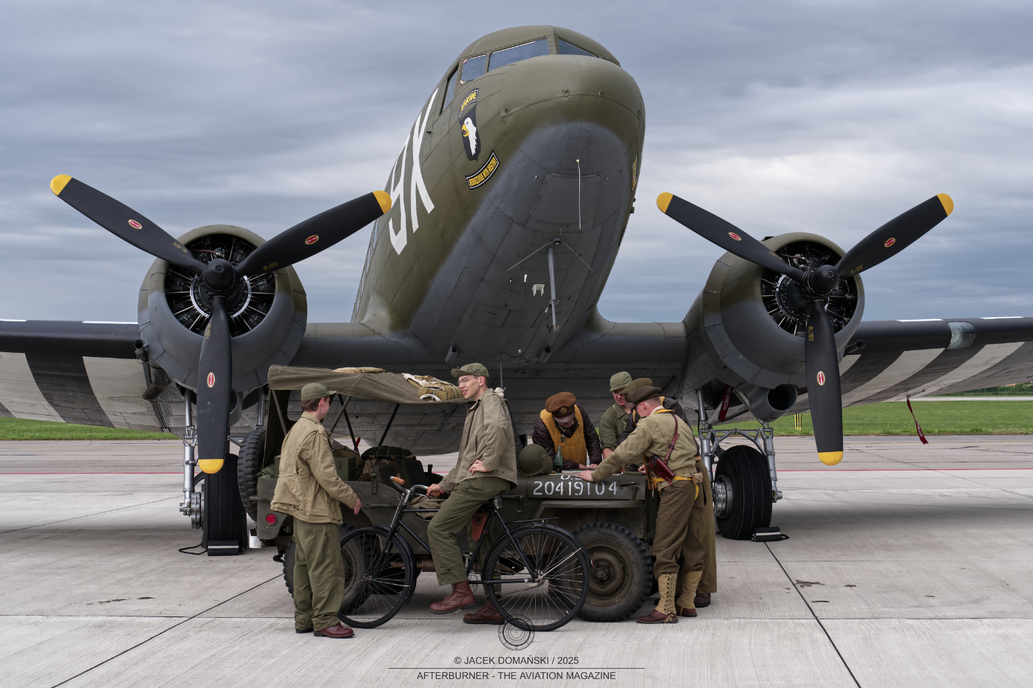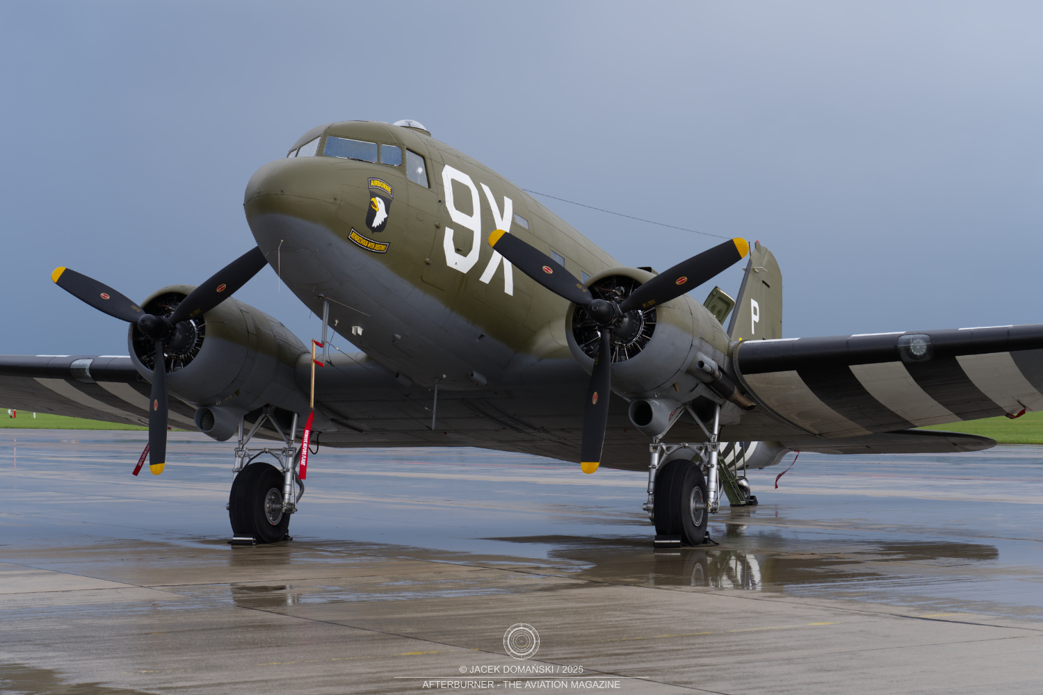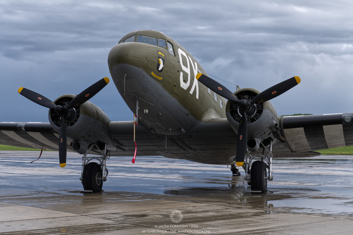 The C-47 Skytrain, built in 1942, carried US markings from the D-Day period and thus provided a perfect backdrop for historical reenactors and photographers alike.