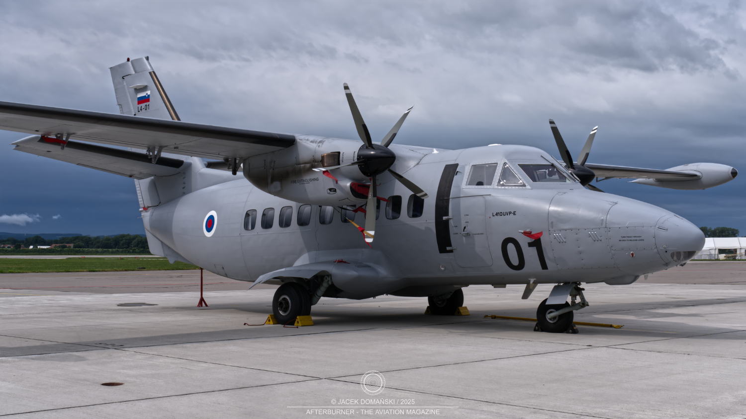 Another aircraft featured only in the static display was the Slovenian Let L-410UVP-E. The aircraft and its crew supported the aforementioned PC-9M display and, while the L-410 is a familiar sight at Czech aviation events, its appearance in Slovenian markings was exceptionally rare.