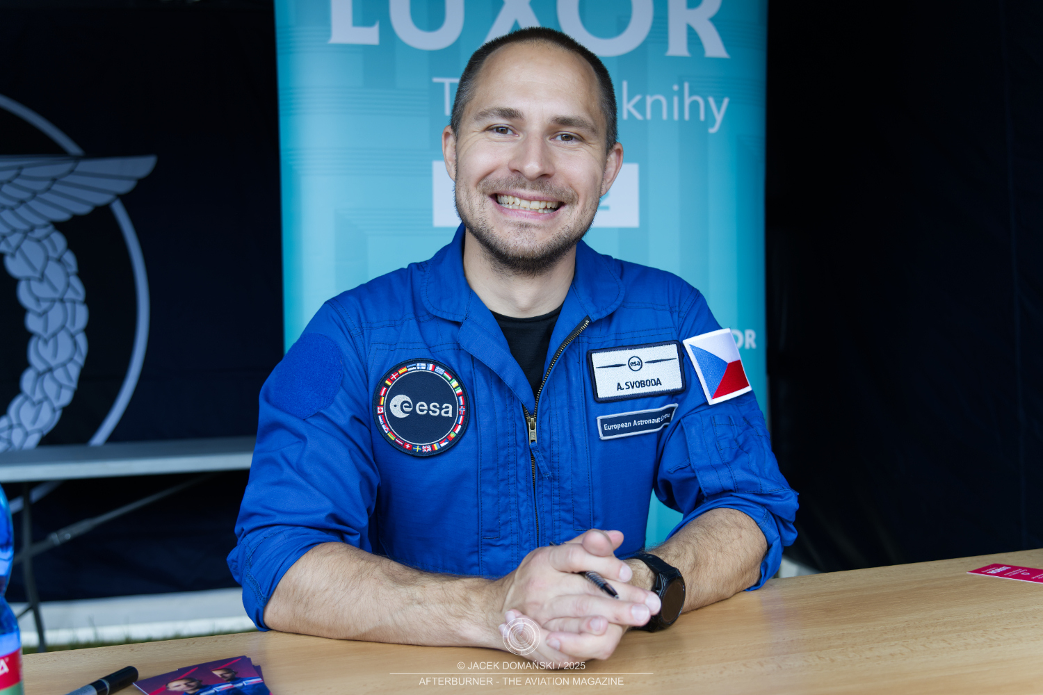 As is customary, the visitors to Pardubice airfield had the opportunity to meet the pilots performing at the show and get their autographs and souvenirs signed at a dedicated stand. Meeting Aleš Svoboda, a Czech military pilot and member of the European Space Agency’s astronaut team, was this year’s main highlight in this case.