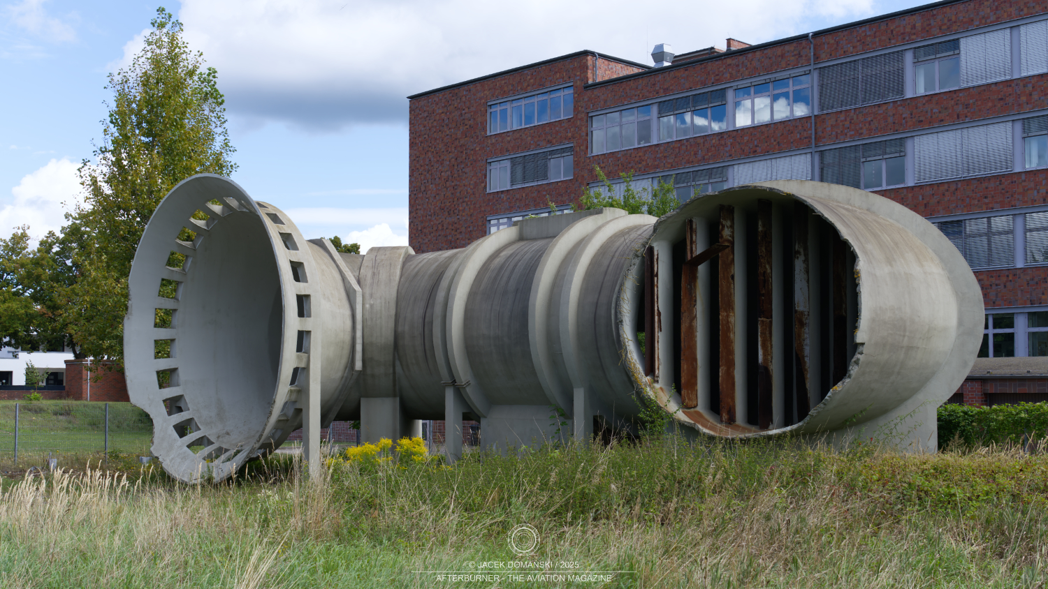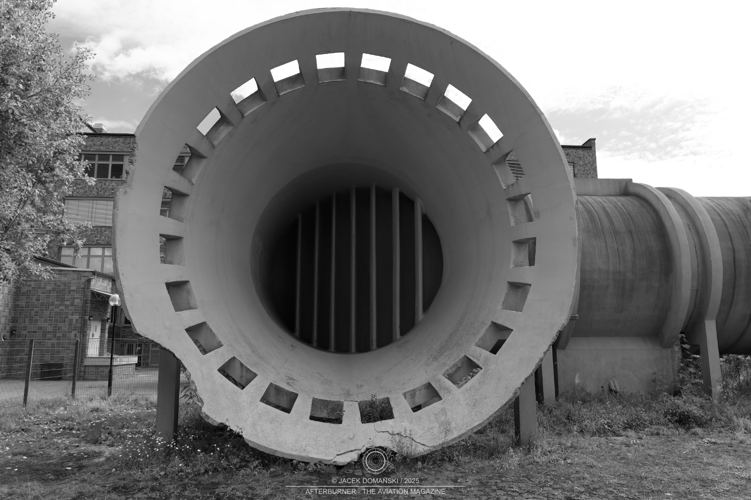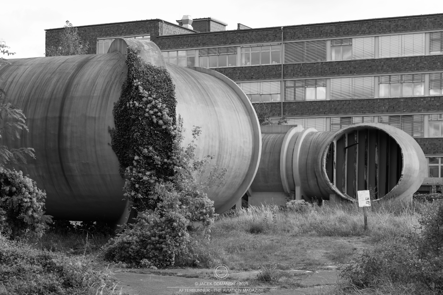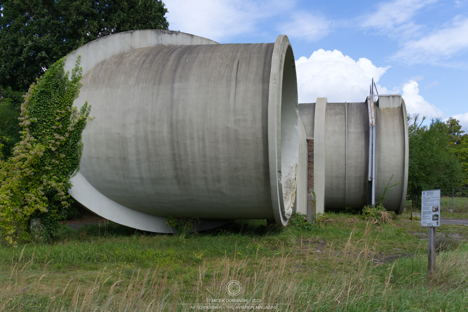 Hidden behind the railway sidings is another aviation-related treasure – the remains of the Junkers wind tunnel. This impressive concrete structure was built in 1934–35 and equipped with a 440 kW engine, enabling wind speeds of up to 68 m/s.